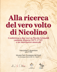 Il Museo di San Giuseppe dei Nudi è lieto di annunciare la conferenza “Alla ricerca del vero volto di Nicolino”, un appuntamento di alta divulgazione culturale dedicato alla figura di Nicola Grimaldi (1673–1732), celebre cantante d’opera noto come Nicolino, protagonista assoluto del panorama musicale europeo tra Sei e Settecento.