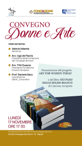 Il convegno rappresenterà inoltre l’occasione per la presentazione del libro “Nei passi nello spazio bianco” di Caterina Arciprete, artista e fondatrice del collettivo Art for Women Today.